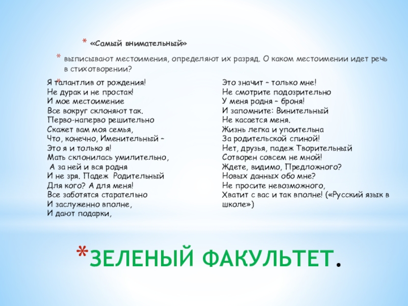 Слайд 10ЗЕЛЕНЫЙ ФАКУЛЬТЕТ.