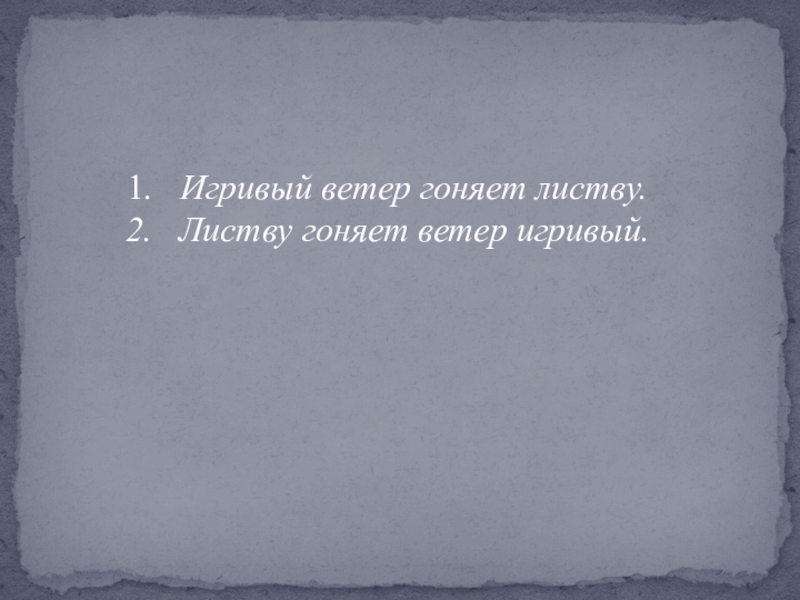 1.   Игривый ветер гоняет листву. 2.   Листву гоняет ветер игривый.