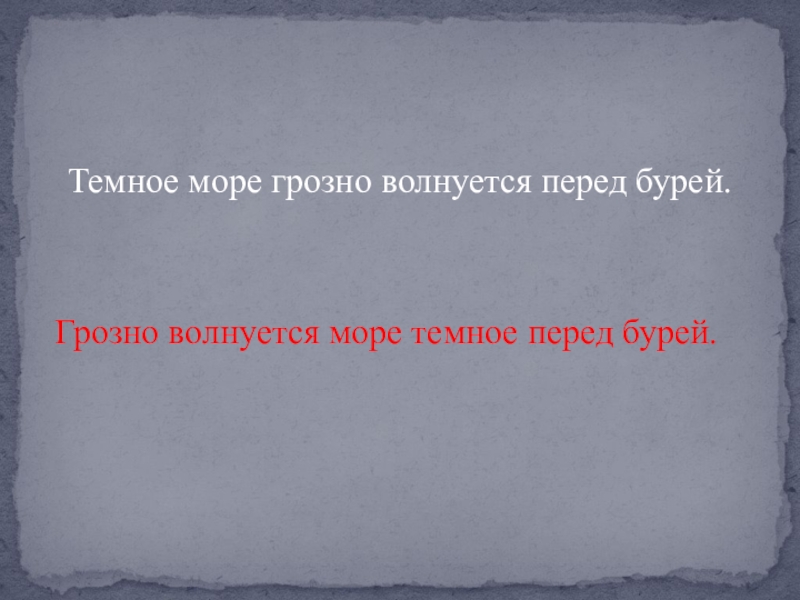 Темное море грозно волнуется перед бурей.Грозно волнуется море темное перед бурей.
