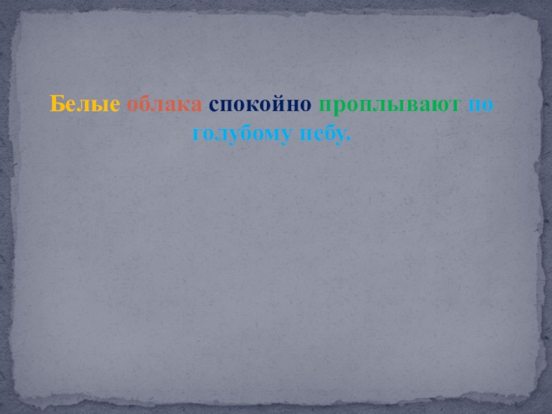 Слайд 6Белые облака спокойно проплывают по голубому небу.