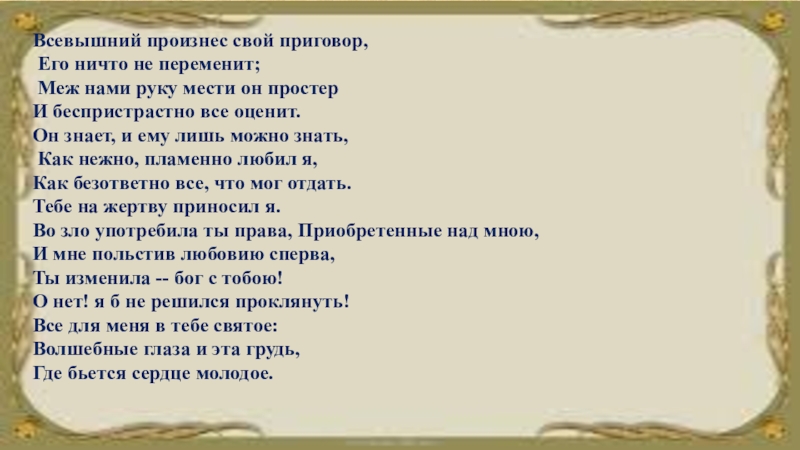 В стихотворении «Всевышний произнес свой приговор…» Лермонтов говорит о давшихся дорогой ценой решениях.
