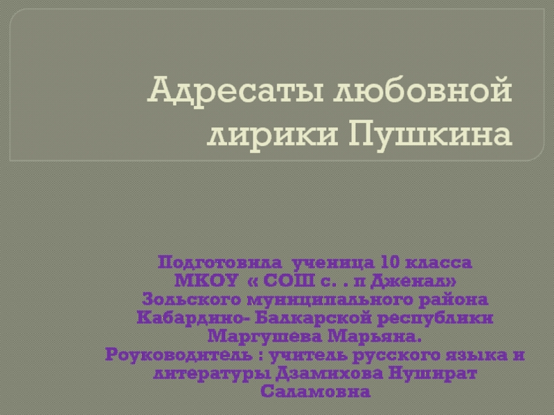 Роуководитель : учитель русского языка и литературы Дзамихова Нушират Саламовна