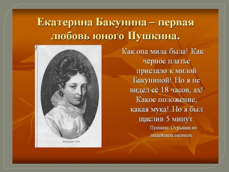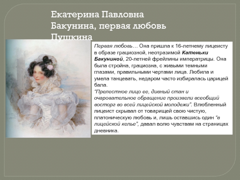 Екатерина Павловна Бакунина, первая любовь Пушкина