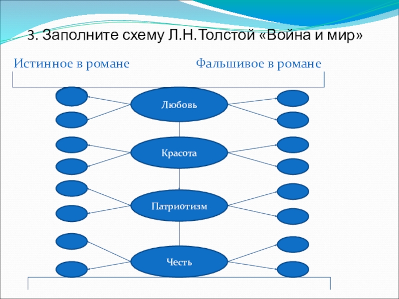 Слайд 19 3. Заполните схему Л.Н.Толстой «Война и мир»
