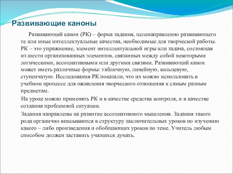 Слайд 12Развивающие каноны