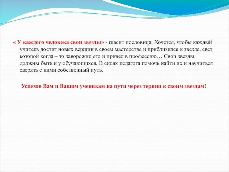 Слайд 31« У каждого человека свои звезды» - гласит пословица. Хочется, чтобы
