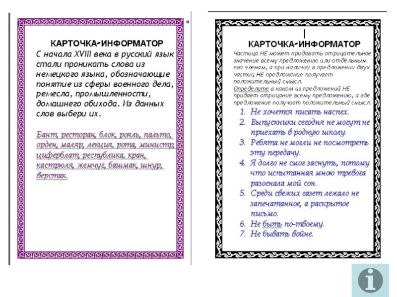 Практико-ориентированные(справочный материал, наглядное пособие)