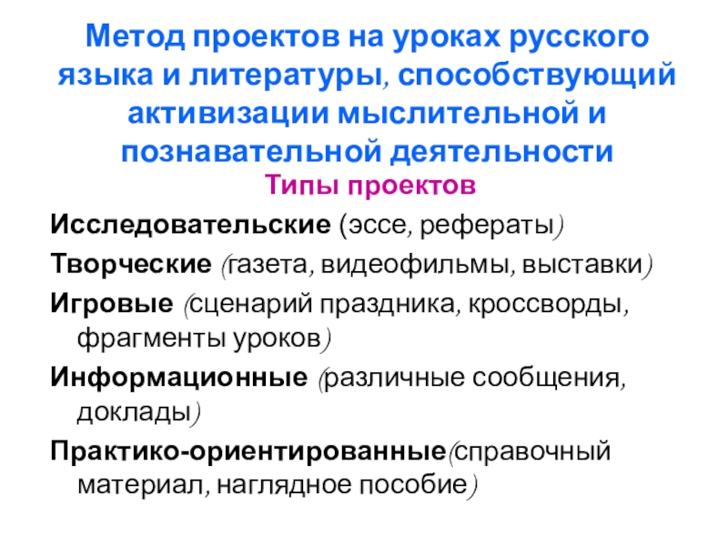 Активизация мыслительной деятельности учащихся на уроках русского языка и литературы