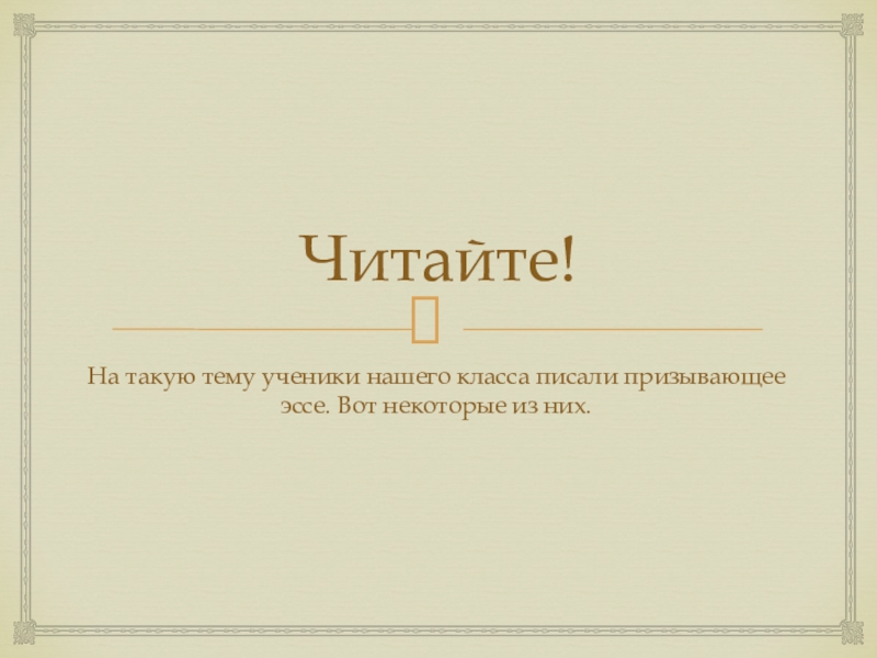 На такую тему ученики нашего класса писали призывающее эссе. Вот некоторые
