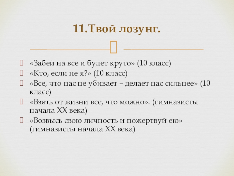 «Все, что нас не убивает – делает нас сильнее» (10 класс)