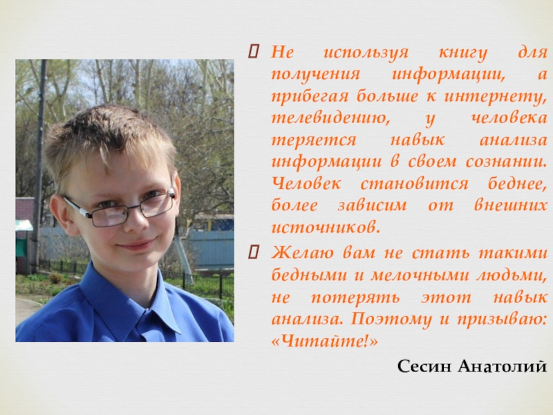 Слайд 30Читай! Такой призыв мы часто слышим от людей старшего поколения. В
