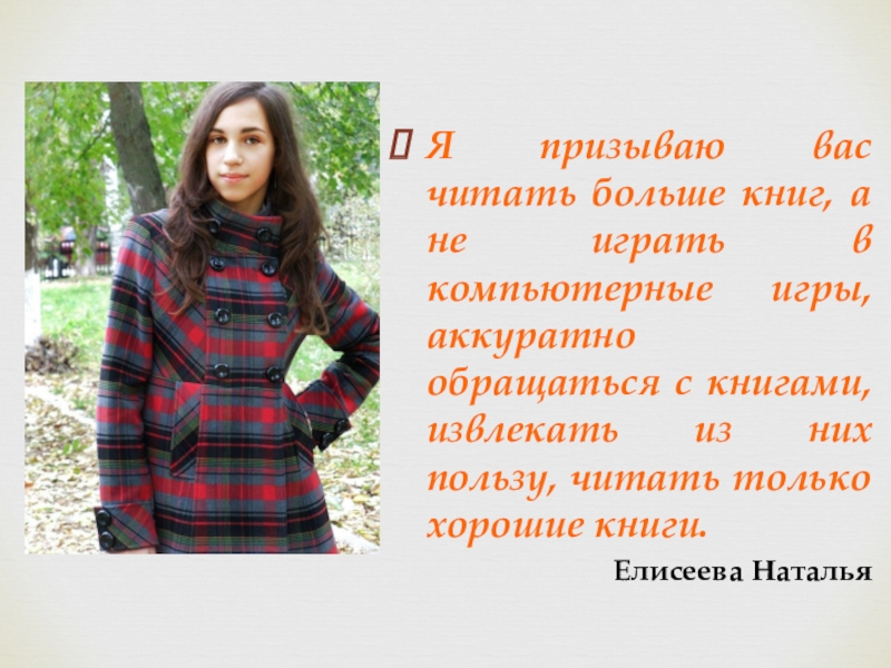 Слайд 29Я призываю вас читать больше книг, а не играть в компьютерные
