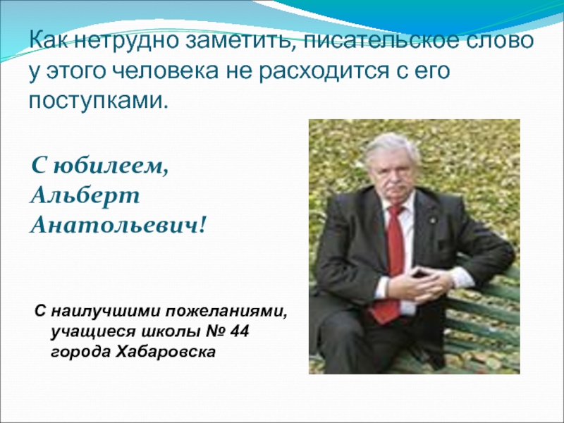 Слайд 16Как нетрудно заметить, писательское слово у этого человека не расходится с