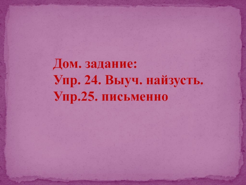 Упр. 24. Выуч. найзусть. Упр.25. письменно