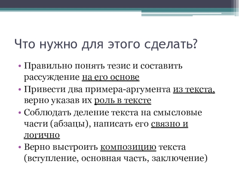 Правильно понять тезис и составить рассуждение на