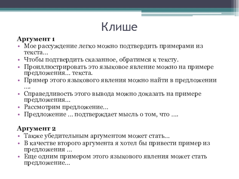 - Каждый аргумент выделяйте в отдельный абзац
