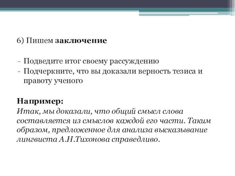 Подведите итог своему рассуждению