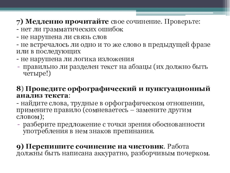 Слайд 237) Медленно прочитайте свое сочинение. Проверьте: