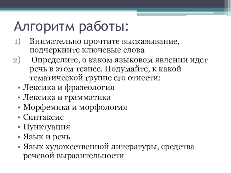 Слайд 1Алгоритм работы над сочинением на лингвистическую тему