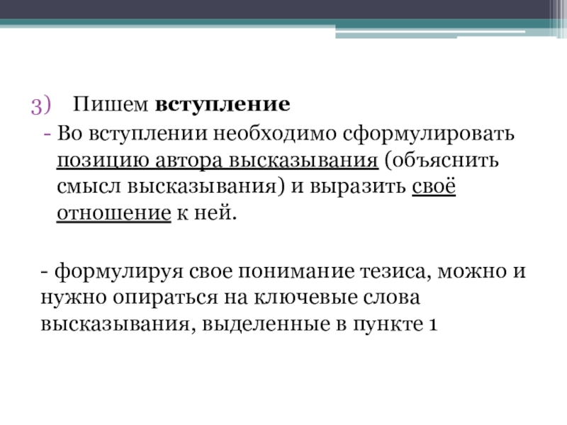 - формулируя свое понимание тезиса, можно и нужно опираться на ключевые слова высказывания, выделенные в пункте 1