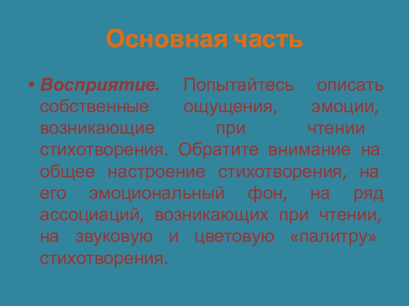 Восприятие. Попытайтесь описать собственные ощущения, эмоции, возникающие при чтении стихотворения.