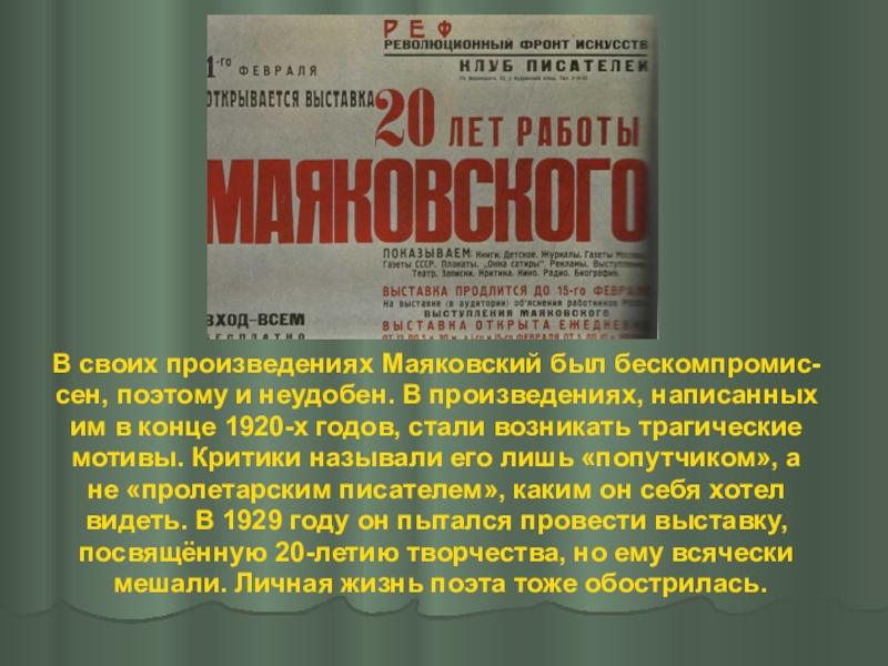Слайд 18В своих произведениях Маяковский был бескомпромис-