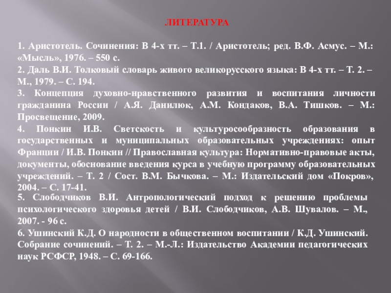 6. Ушинский К.Д. О народности в общественном воспитании / К.Д. Ушинский. Собрание сочинений. – Т. 2. – М.-Л.: Издательство Академии педагогических наук РСФСР, 1948. – С. 69-166.