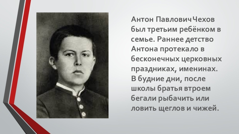 Слайд 6Антон Павлович Чехов был третьим ребёнком в семье. Раннее детство Антона