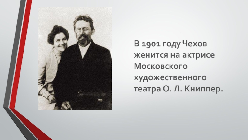 Слайд 18В 1901 году Чехов женится на актрисе Московского художественного театра О.