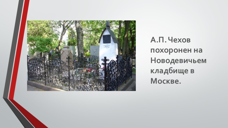 Слайд 21А.П. Чехов похоронен на Новодевичьем кладбище в Москве.