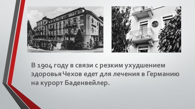 Слайд 19В 1904 году в связи с резким ухудшением здоровья Чехов едет
