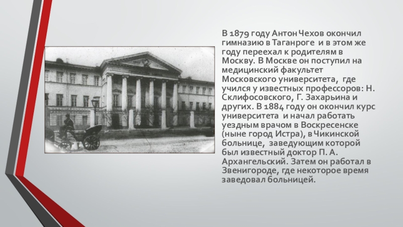 Слайд 9В 1879 году Антон Чехов окончил гимназию в Таганроге и в