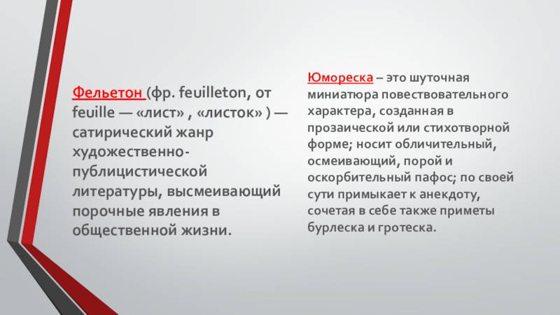 Слайд 11Фельетон (фр. feuilleton, от feuille — «лист» , «листок» ) —