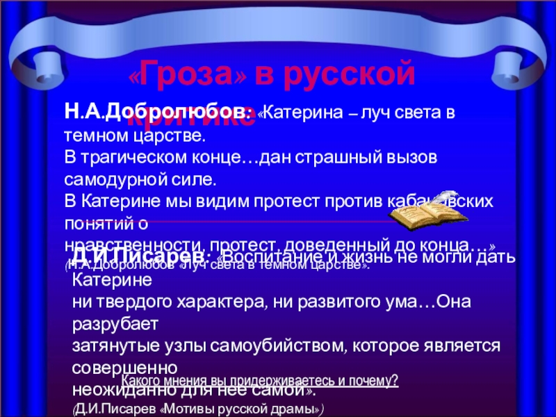Д.И.Писарев: «Воспитание и жизнь не могли дать Катерине