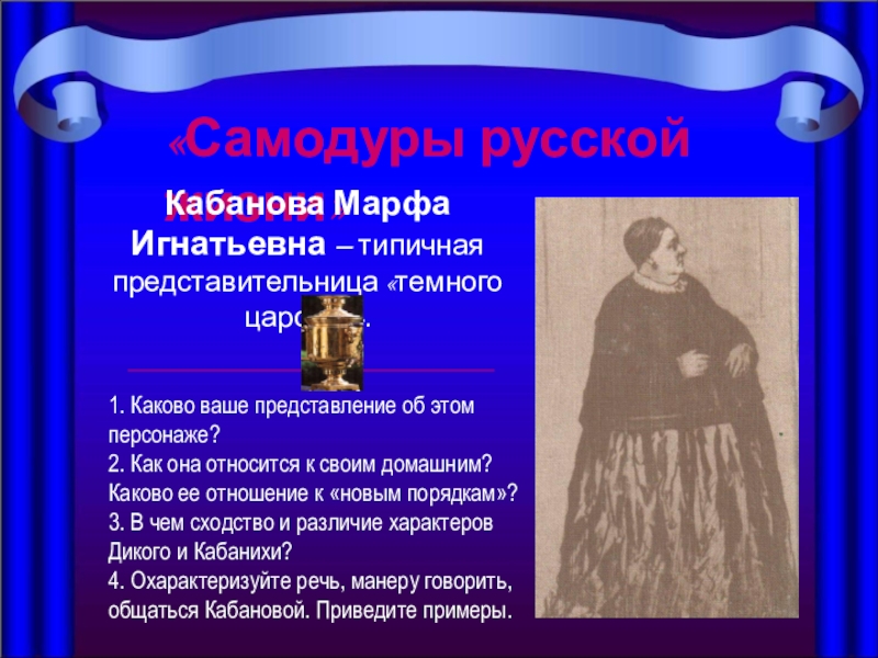 4. Охарактеризуйте речь, манеру говорить, общаться Кабановой. Приведите примеры.
