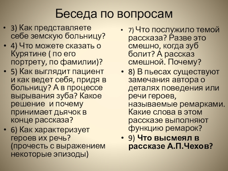 7) Что послужило темой рассказа? Разве это смешно, когда зуб болит? А рассказ смешной. Почему?