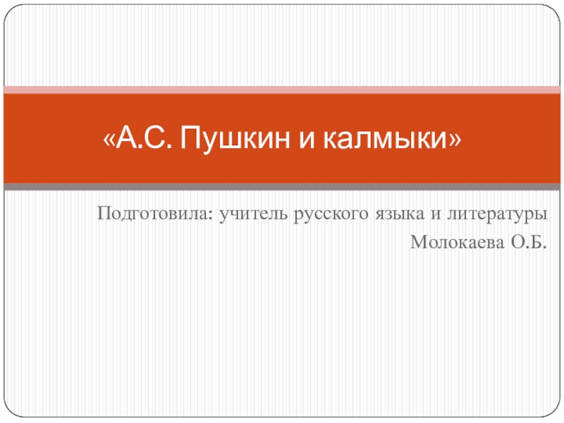 Подготовила: учитель русского языка и литературы Молокаева О.Б.«А.С. Пушкин и калмыки»