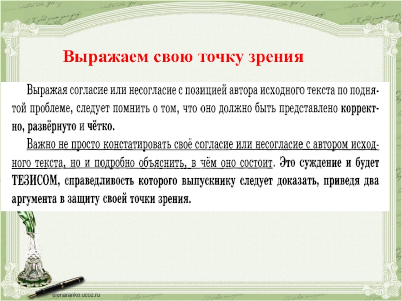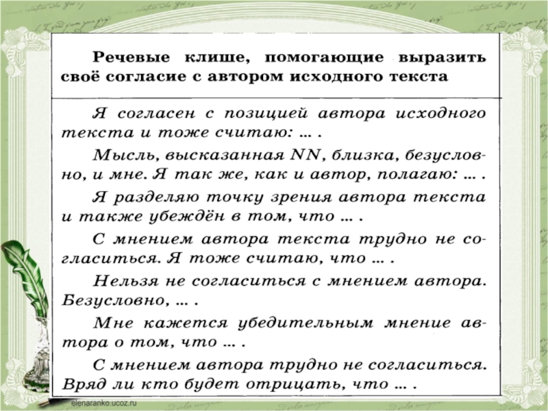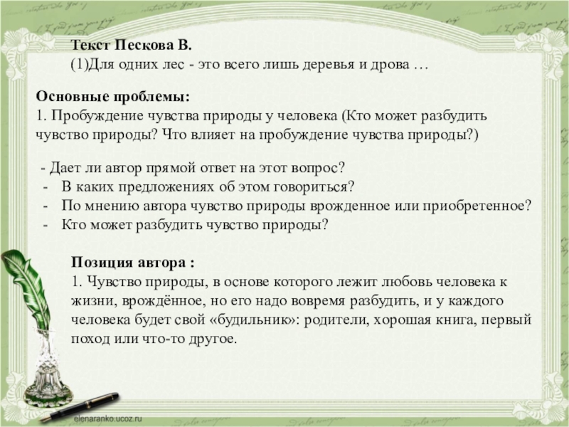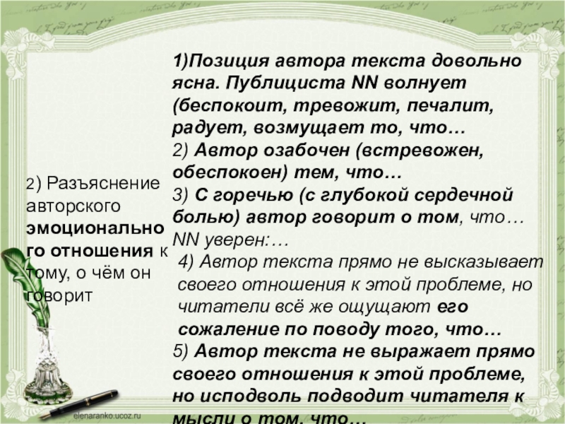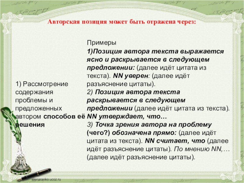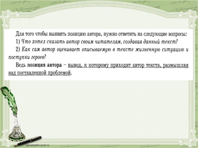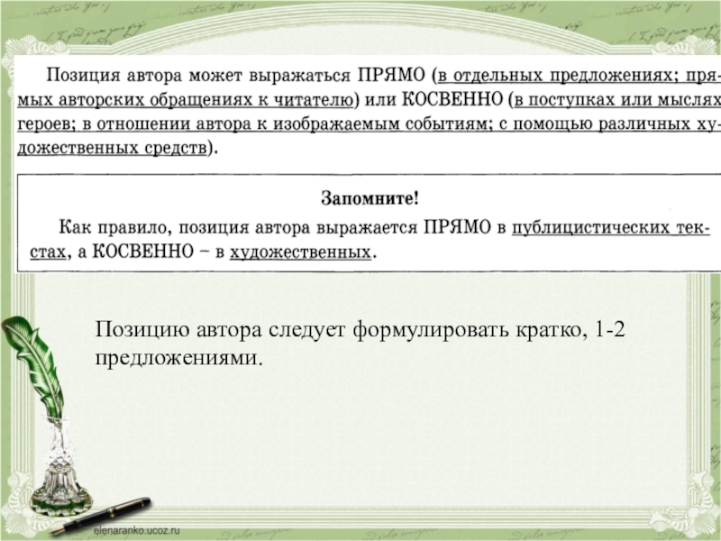 Позиция автора :