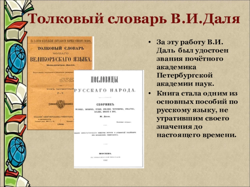 За эту работу В.И.Даль был удостоен звания почётного академика