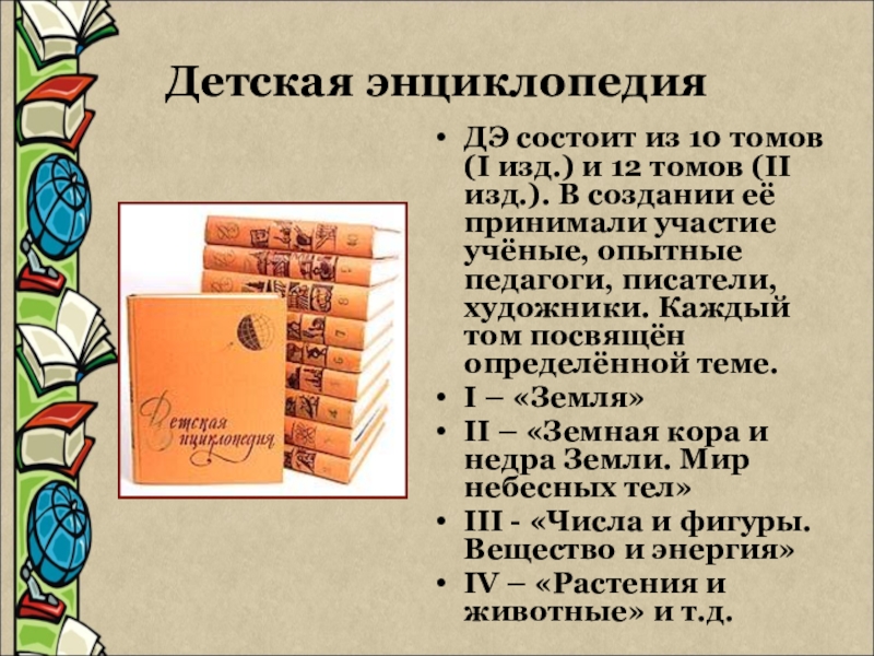 (II изд.). В создании её принимали участие учёные, опытные педагоги, писатели, художники. Каждый том посвящён определённой теме.