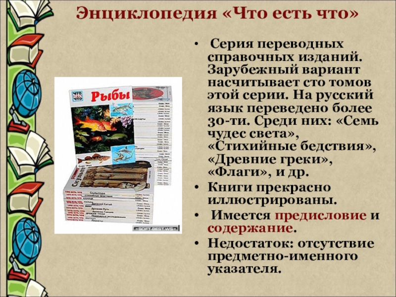 Энциклопедия – справочное издание, содержащее свод знаний по всем или отдельным отраслям.