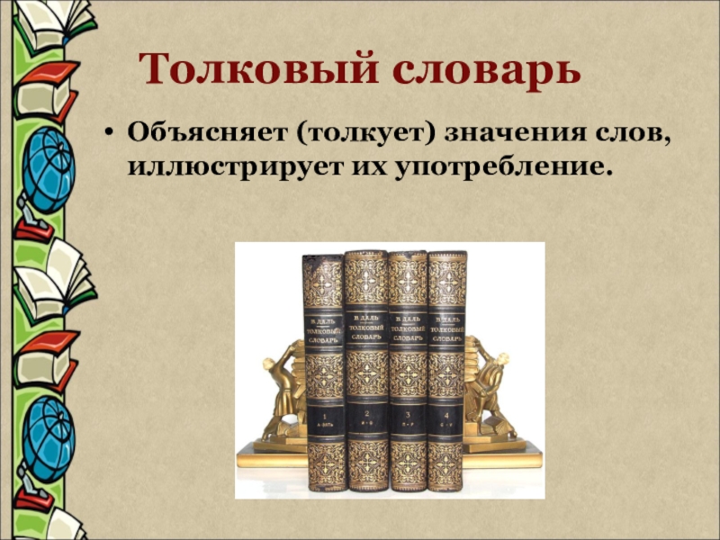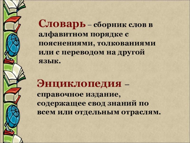 Слайд 4Словарь – сборник слов в алфавитном порядке с пояснениями, толкованиями или