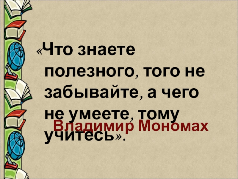 «Что знаете полезного, того не забывайте, а чего не умеете,