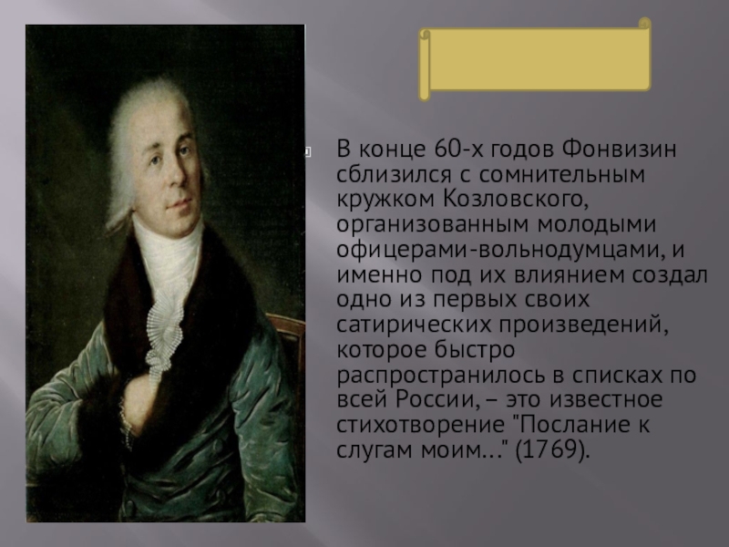 Слайд 6В конце 60-х годов Фонвизин сблизился с сомнительным кружком Козловского, организованным