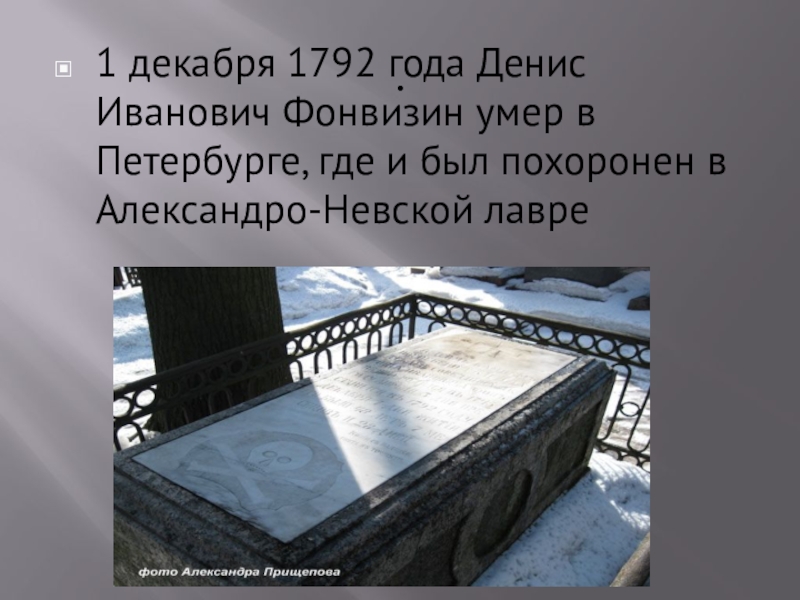 1 декабря 1792 года Денис Иванович Фонвизин умер в Петербурге, где