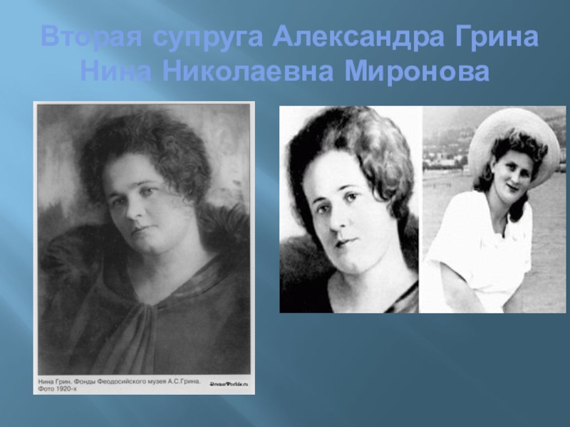 Слайд 5Вторая супруга Александра Грина Нина Николаевна Миронова