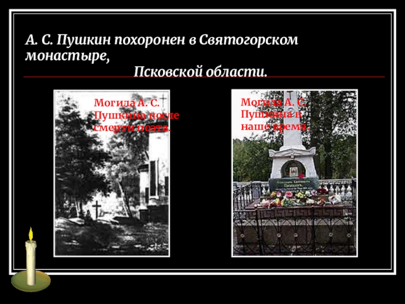 Слайд 47А. С. Пушкин похоронен в Святогорском монастыре,