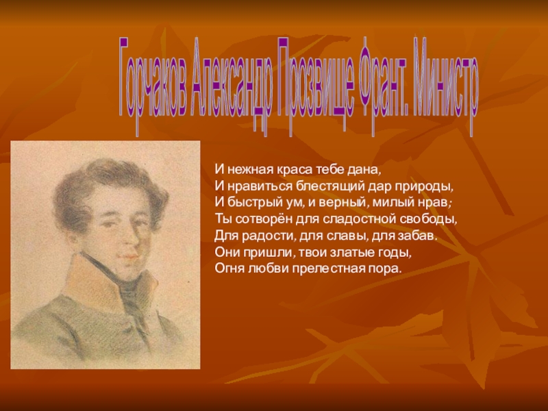 Слайд 23Горчаков Александр Прозвище Франт. Министр