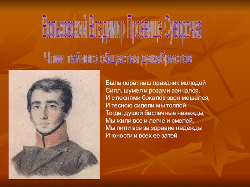 Слайд 19Вольховский Владимир Прозвище Суворочка