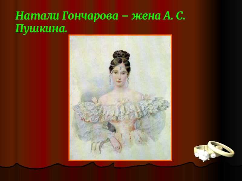Слайд 36Натали Гончарова – жена А. С. Пушкина.